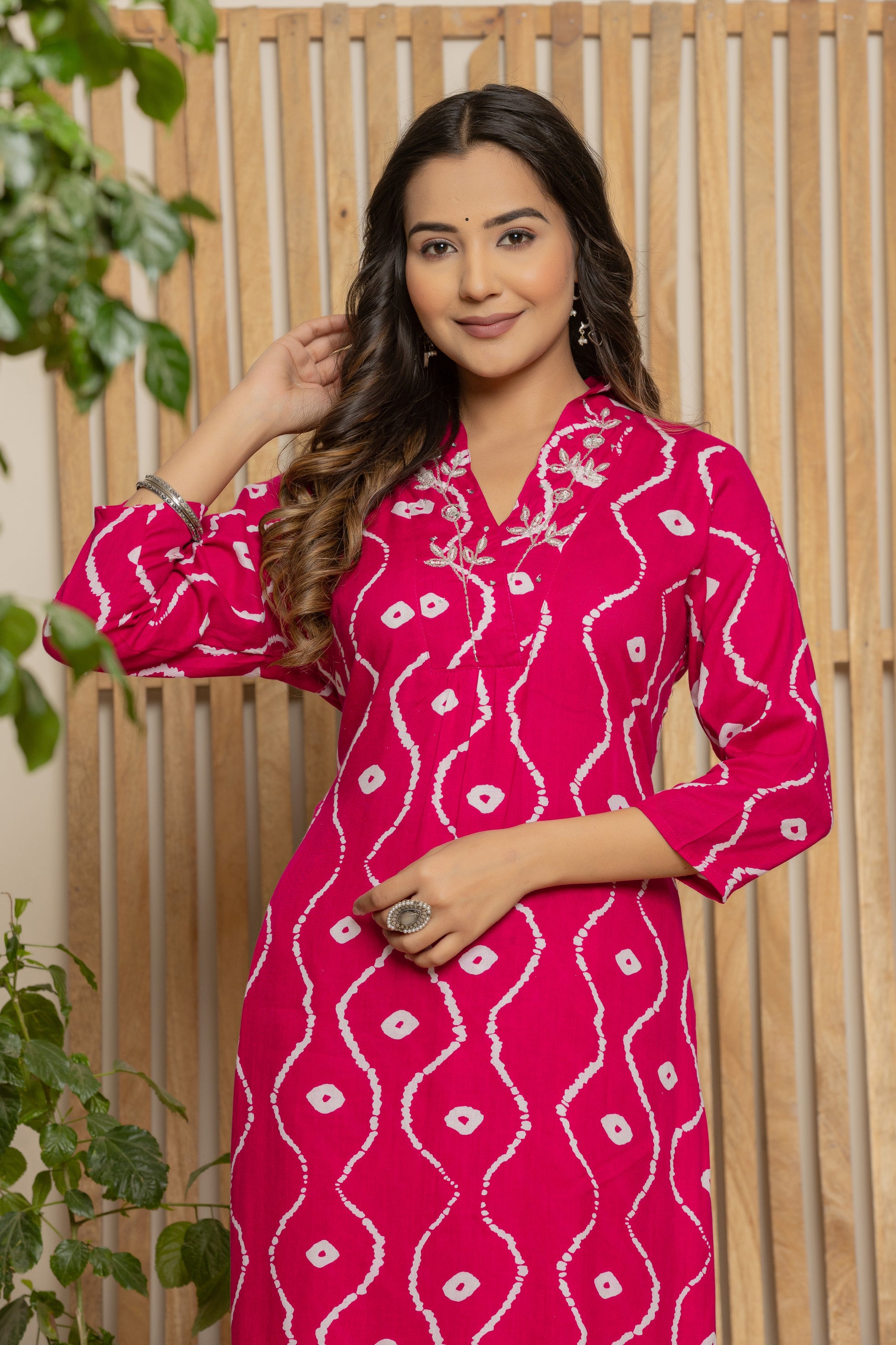 This Rani Rayon Kurta Pant set features beautiful Hand Adda work on the yoke, adding a touch of elegance and traditional beauty to this nice and pretty ensemble. This set is not only stylish but also comfortable to wear.
