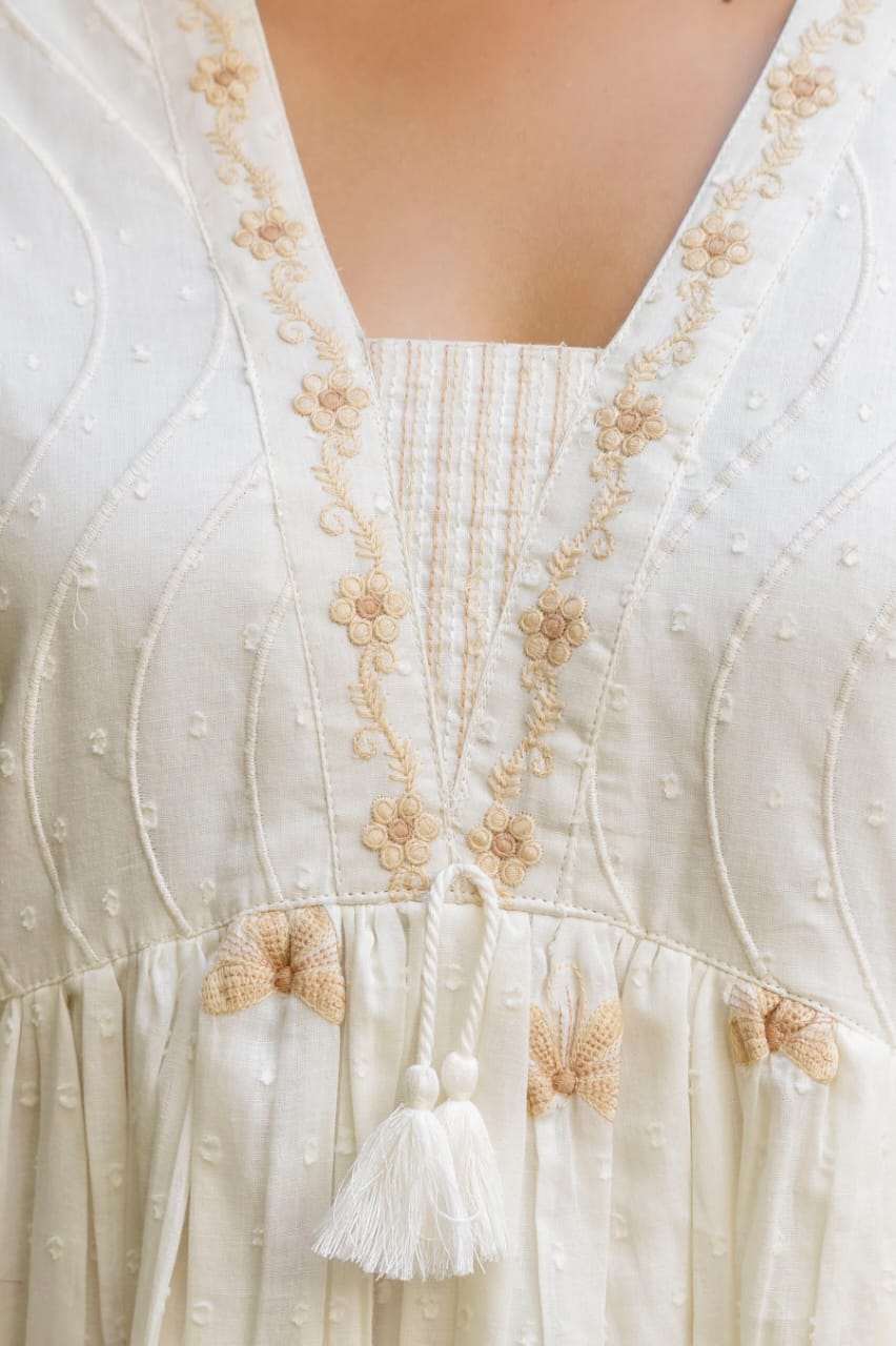 Off White Cotton Kurta Pant Set